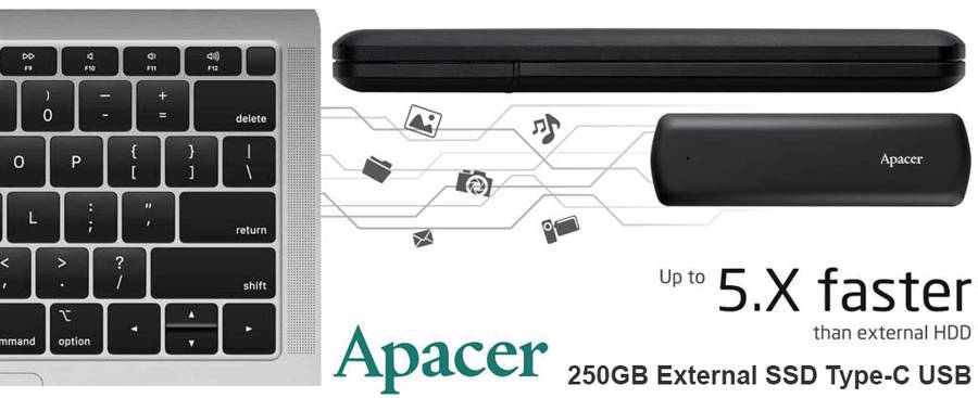 Apacer AS721 250GB External SSD Type-C USB Black(Aluminium) : USB 3.2 Gen 2 SATA / USB-C and backward compatible with USB 2.0; System Supported Windows 10/8.1/8/7, Mac OS 10.6.X or above, Linux Kernel 2.6.X or above; Shock Proof(Shock 1500G/0.5 msec); MTBF 2,000,000 hours., Retail Box, Limited 2 Year Warranty