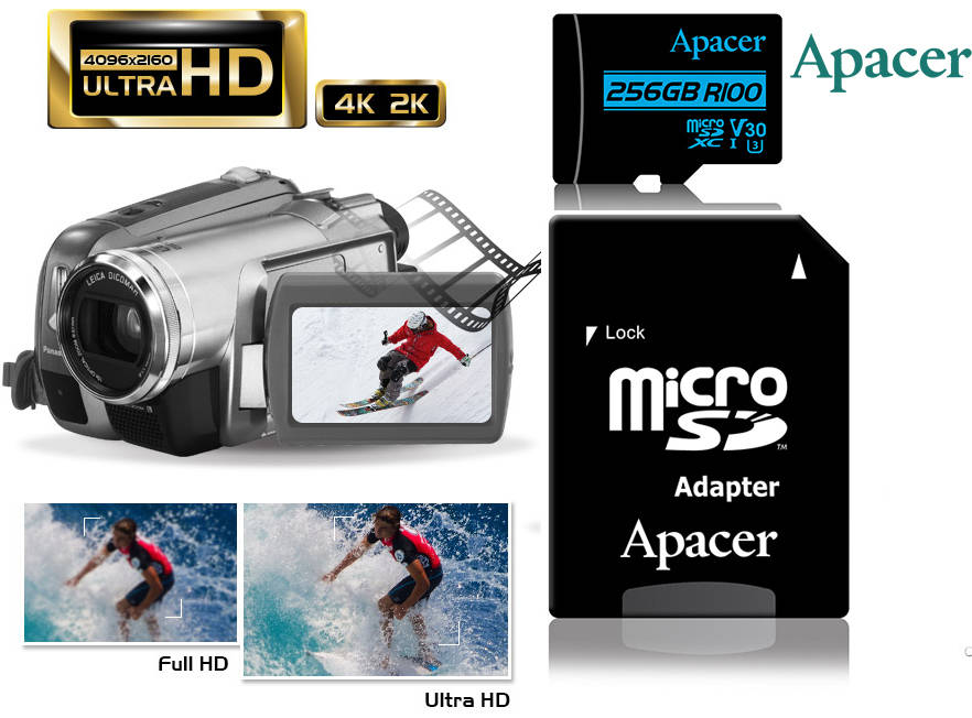 • Description: Apacer microSDXC 256GB UHS-I U3 V30 MicroSD Card with Adapter