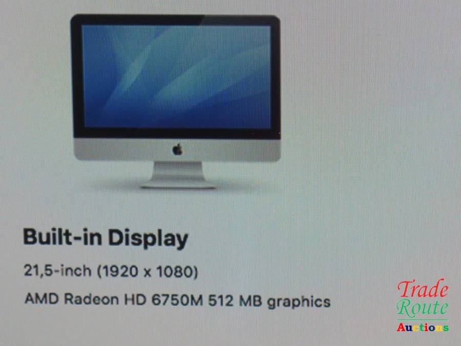 By default, it is configured with 4 GB of RAM (1333 MHz PC3-10600 DDR3 SDRAM), a 500 GB (7200 RPM) hard drive, a vertically-mounted slot-loading DVDR DL "SuperDrive", and AMD Radeon HD 6750M graphics with 512 MB of dedicated GDDR5 memory. It also has a built-in "FaceTime HD" video camera and built-in stereo speakers underneath the 21.5" glossy 16:9 LED-backlit TFT Active Matrix LCD (1920x1080 native) display "with IPS technology". Connectivity includes four USB 2.0 ports, a Firewire "800" port, built-in AirPort Extreme, Gigabit Ethernet, and an SDXC card slot as well as a single "Thunderbolt" port that is backward compatible with Mini DisplayPort and, likewise, supports an external display up to 30" (2560x1600). Thunderbolt also supports other peripherals that use the Thunderbolt standard which provides up to 10 Gbps of bandwidth in both directions.