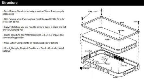 Apple Iphone 4 4s Blade aluminium silver metal bumper