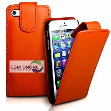Apple iPhone 5 Wallet Flip Case + Screen Protector (Orange) - Cheap Shipping