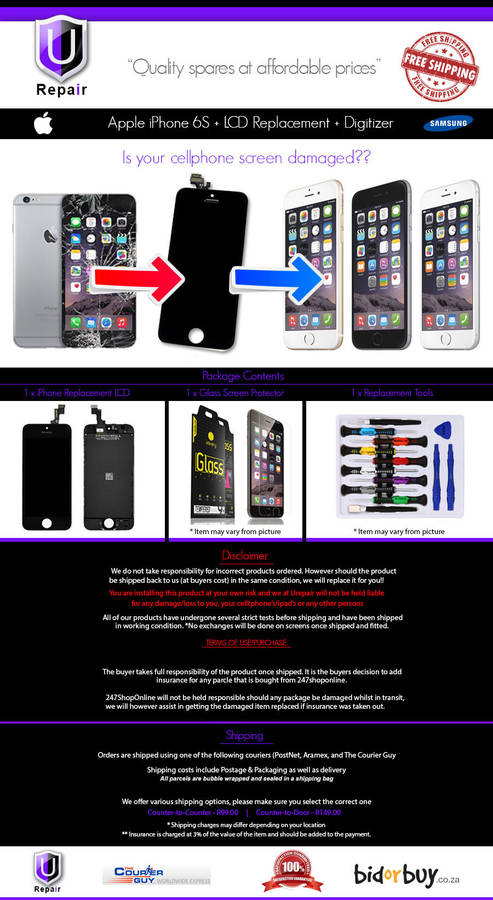 Apple iPhone 6s Plus LCD Replacement - BLACK - FREE SHIPPING - FREE TOOLS