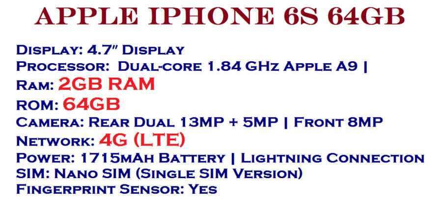 Apple iPhone 6S SILVER GREY  2GB RAM , 64GB Storage  EXCELLENT CONDITION