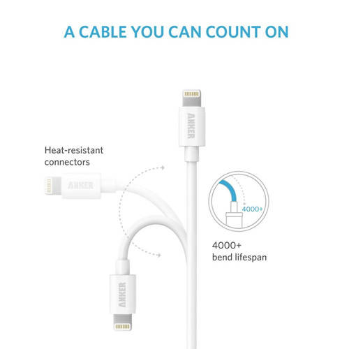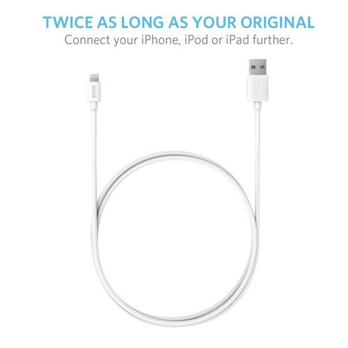 [Apple MFi Certified] Anker 6ft / 1.8m Premium Extra Long Lightning to USB Cable White