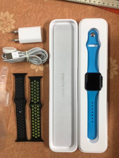 Includes Original box, all original accessories. Always used with a screen protector and in excellent condition. Includes 2 additional watch bands worth R1500 for free!! 38mm Sport Space Grey with Blue Band!!