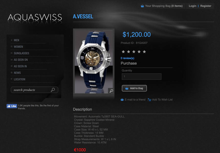 Introducing the AQUASWISS Collection, stunning watches that can be worn for sport, casual, or dress. All AQUASWISS timepieces are water resistant up to 10 ATM (330 feet), some models are waterproof. All AQUASWISS watches come with Swiss movements with or without chronograph. AQUASWISS watches are brand new and come in their original box with a manual and a optional 2-year warranty. AQUASWISS watches are truly high quality timepieces. All weights, measurements and colors are approximate and may vary slightly from the listed dimensions or as seen in the image. All pictures are magnified to show the smallest of details. Please, refer to the item description for actual weight and size evaluation.