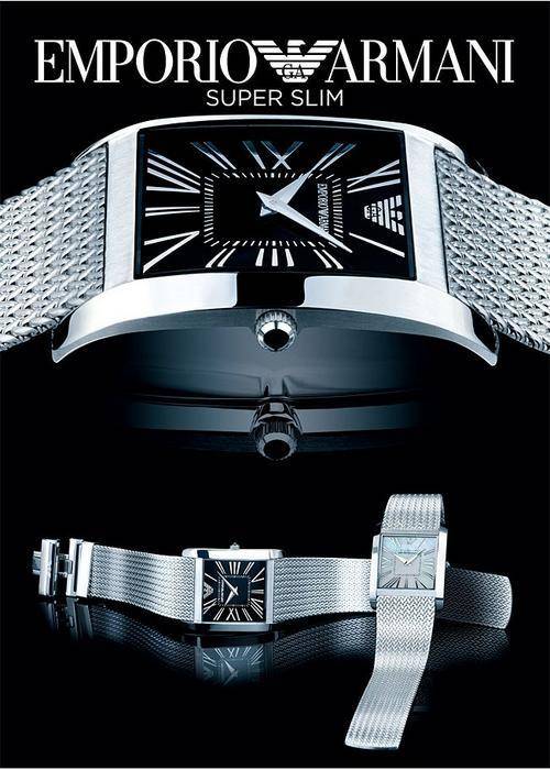 Make a sophisticated statement with this slim Emporio Armani watch. It features a super slim, stainless steel case with a black dial and roman numeral hour markers. A stainless steel mesh bracelet adds the final touch of modern refinement.