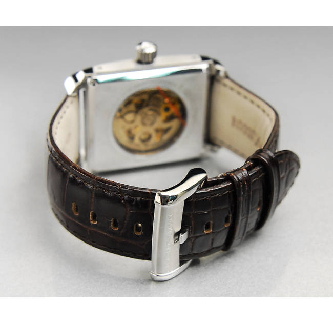 Always arrive on time with this automatic watch from Emporio Armani. The stainless steel case features a silver-tone dial with exposed movement and an amber crystal. The brown croco-embossed leather strap adds the finishing touch.