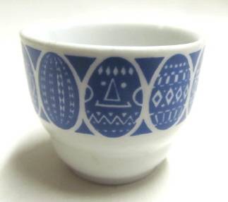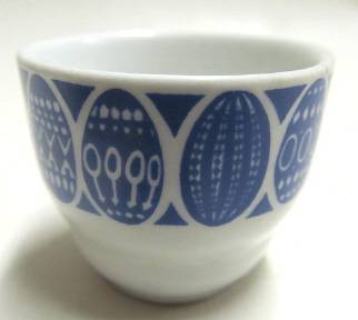 A blue Kauno egg cup designed by Raija Uosikkinen, who worked for Arabia from 1947 to 1986. Condition good. Height 40 mm; rim diameter 49 mm.