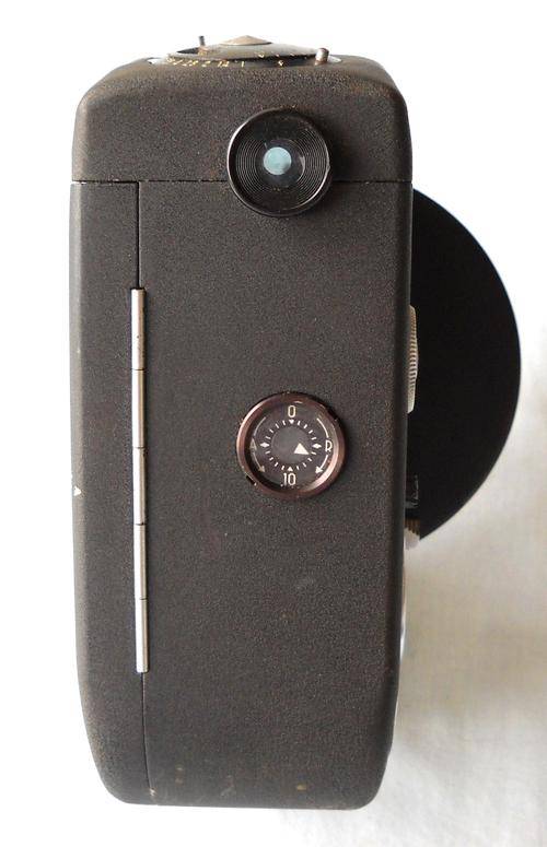 It has a matt black painted die-cast metal body. The Camera has a spring motor.