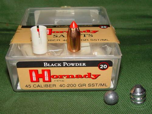 It fires a .44 cal patched ball or a .45 bullet. I will also include 20 Hornady Sabots