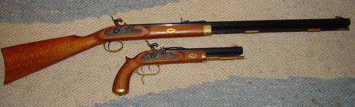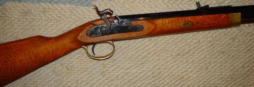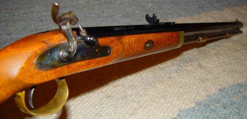 Rifle specially designed for beginners at muzzleloader shooting. It is made in .45 caliber percusion, adjustable Buckhorn rear sight and blade front sight.