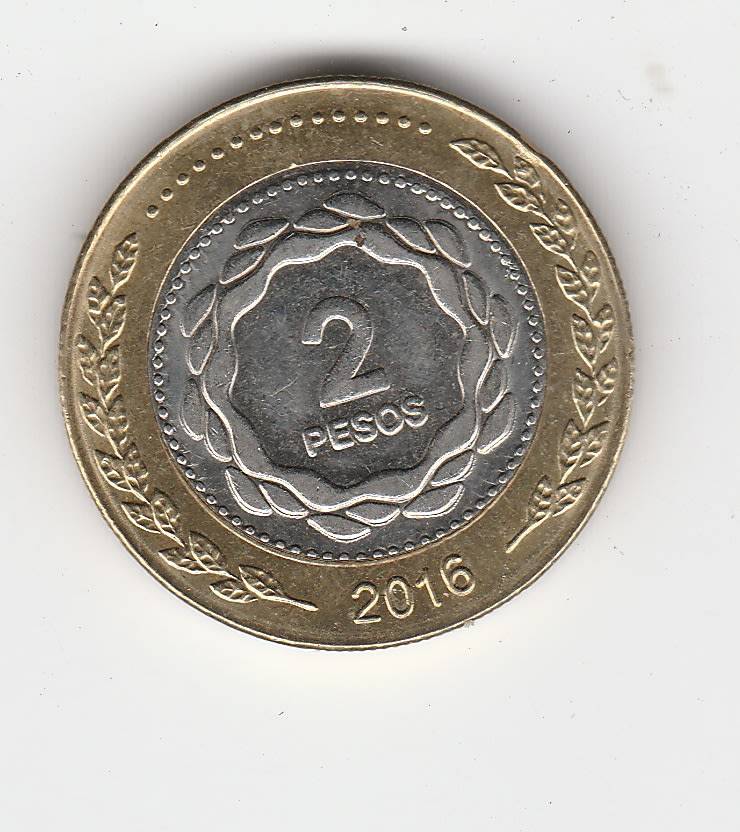 ARGENTINA 2 PESOS 2016 BIMETAL AUNC ARGENTINA 2 PESOS 2016 BIMETAL AUNC