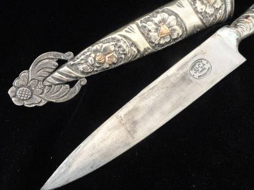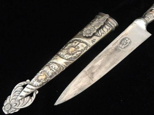 in good condition the dull mark on the blade is grease from the sheath. Please view pics carefully to avoid any discrepancies.