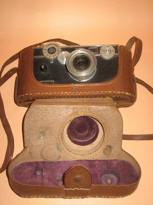 An Argus Film Camera in it's Original Leather Carry Case. 1950's - 1960's. Working Condition is Unknown. Note wear with age and use.