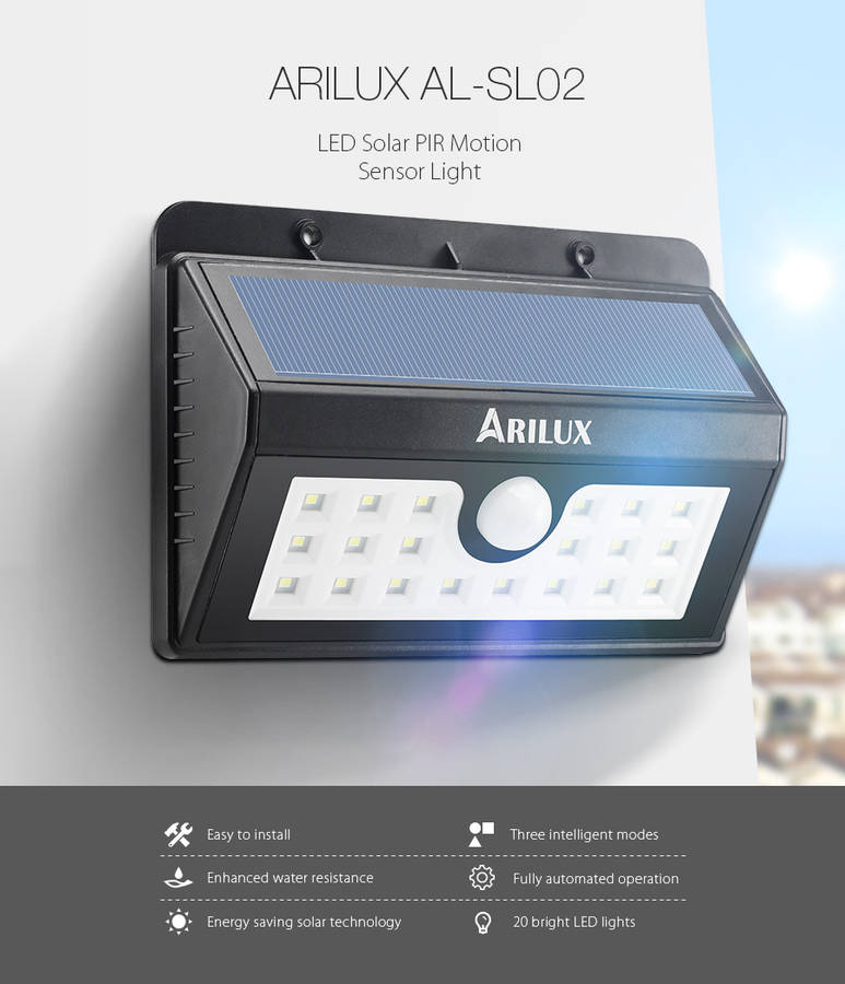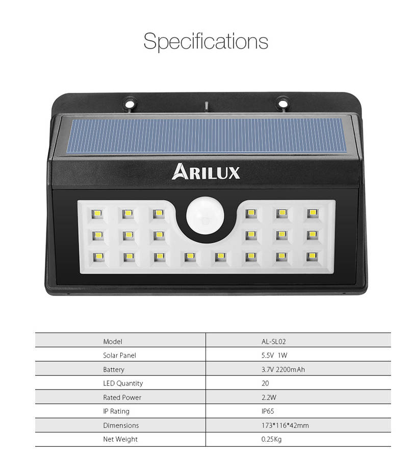 Description:With the ARILUX AL-SL02 solar light, you can easily add solar lighting to your home without the hassles of wires and batteries.