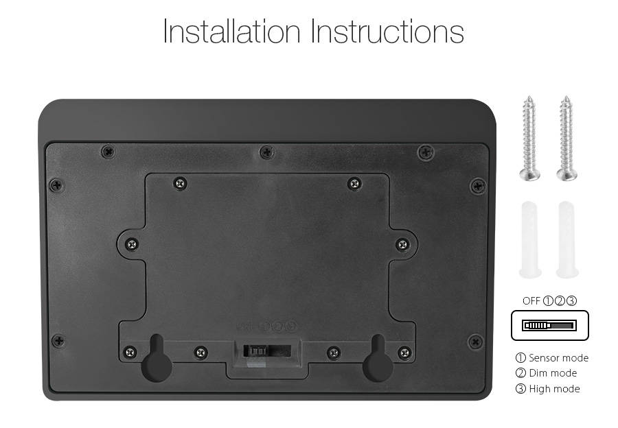 Dim modeAutomatically turns lights off during the day and lights up at night in dim mode. During the night, when it senses movement the light will brighten to full brightness mode. The light will return to dim mode after 15 seconds of no movement, if people stay active in the sensor area the bright light mode will remain on.
