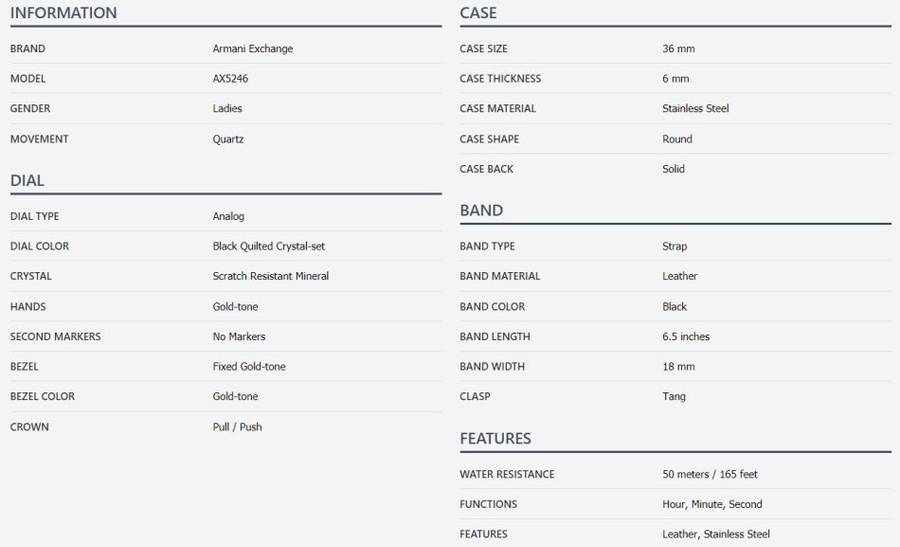 ARMANI EXCHANGE AX5246 BLACK FACE LEATHER STRAP QUARTZ WOMEN WATCH