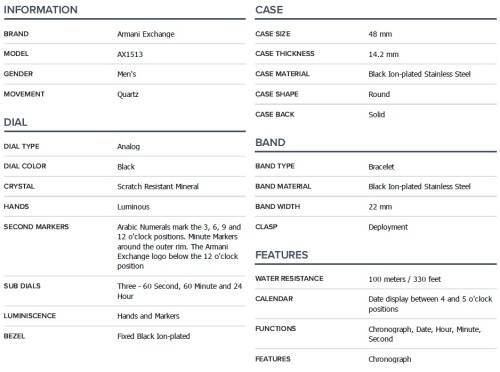 BRAND NEW ARMANI EXCHANGE AX1513 CHRONOGRAPH BLACK DIAL BLACK ION PLATED MEN'S WATCH IN BOX WITH MANUAL