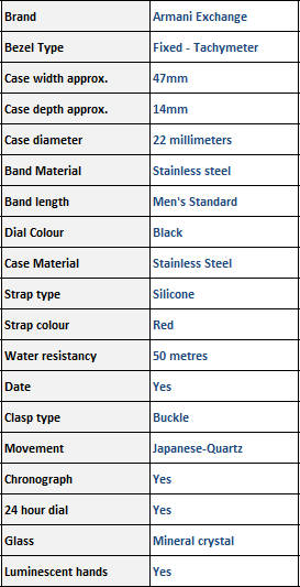 ARMANI EXCHANGE CHRONOGRAPH TACHYMETER WATCH   **VALUE: R5390.00**