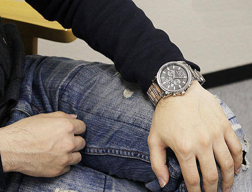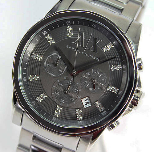 Polished Silver-ToneStainless Steel case etched with AX logo on Crown