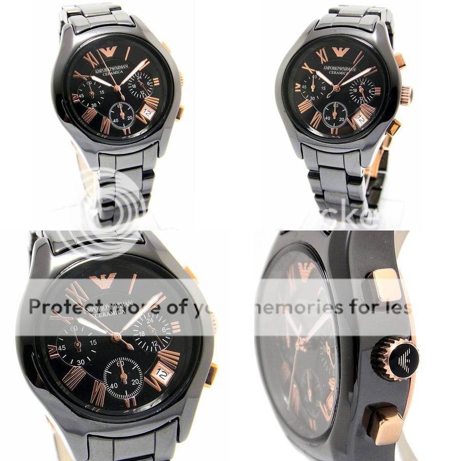 A new interpretation of a classic. Our timeless chronograph watch in gleaming black ceramic with Roman numeral hour markers and a black dial. It's a modernly sophisticated style by Emporio Armani.