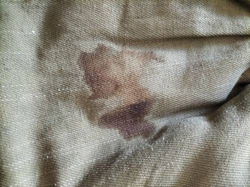 IT WAS TAKEN FROM A WOUNDED OPPONENT ON THE SWA BORDER WAR, AND SHOWS STAINS, WHICH COULD BE BLOOD.