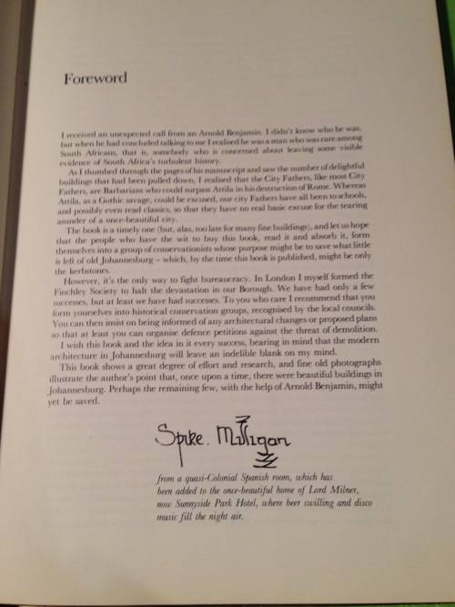 Macmillan South Africa, 1979, forward by Spike Milligan, lavishly illustrated with architectural detailing and period photographs, 102 pages, dust jacket In bad condition, book in very good condition.