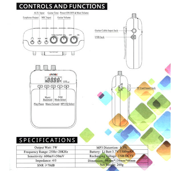 Package Includes: 1 x Guitar Amplifier 1 x USB Data Line 1 x User Manual
