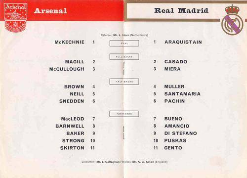 ARSENAL - REAL MADRID 1962 FREINDLY MATCH OFFICIAL PROGRAMME ( VERY RARE )