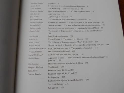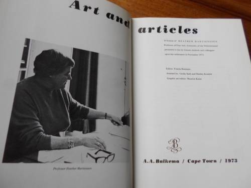 Art and articles: in honour of Heather Martienssen. Editor Frieda Harmsen. Assisted byCecily Sash and Shirley Kossick. Graphic art editor Maurice Kahn.