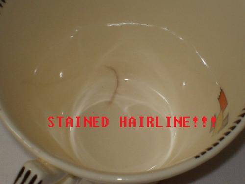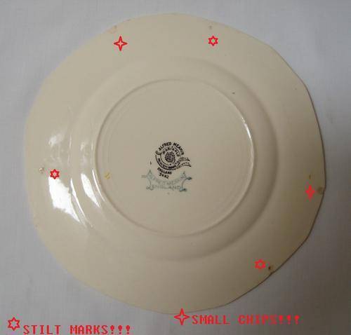 Unfortunately tea cup has a stained hairline. Tea plate and saucer have stilt