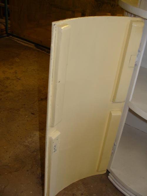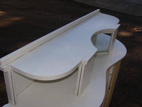 APPROXIMATE SIZEHEIGHT 117CM TOP LENGTH 150MM SECTION IN MIDDLE CURVED TOP TO SHELFHEIGHT 27CM NEXT SQUARE OPENNINGHEIGHT 33MM BOTTOM ONE 37MM-DRAW HEIGHT 21CM LENGTH 40CM DRAW DEPTH 13CM