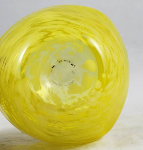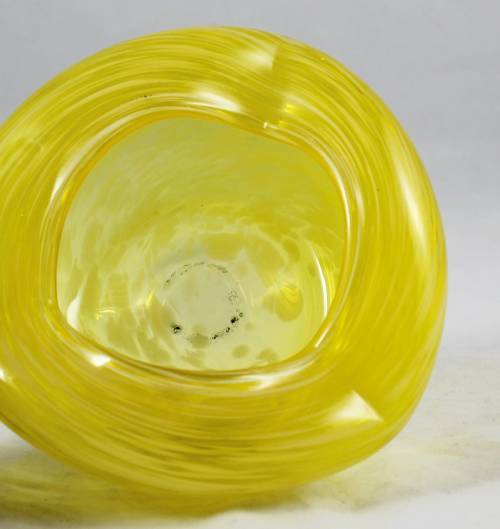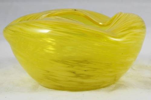A stunning art glass ashtray with a lovely yellow design. It is in good condition and will make a wonderful addition to your collection.