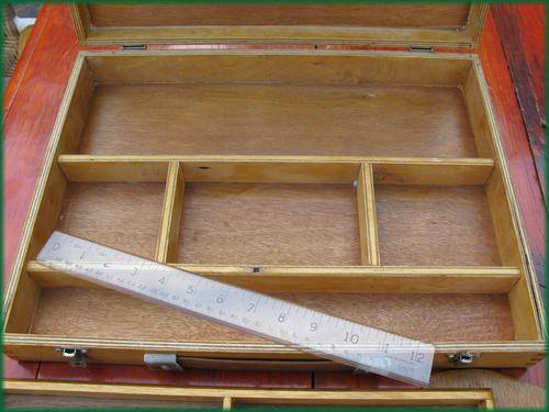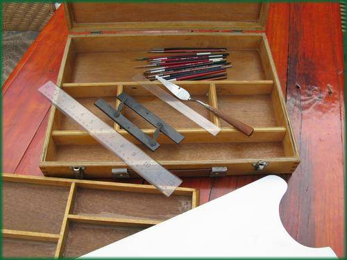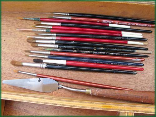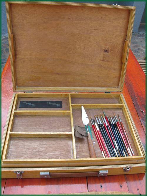 Also included 16 fine paint brushes, a palette knife and 3 rulers.