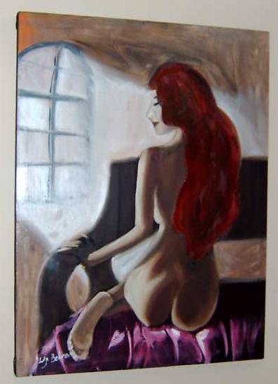 Redhead on couch - Lize Behrens- well known artist in Free State