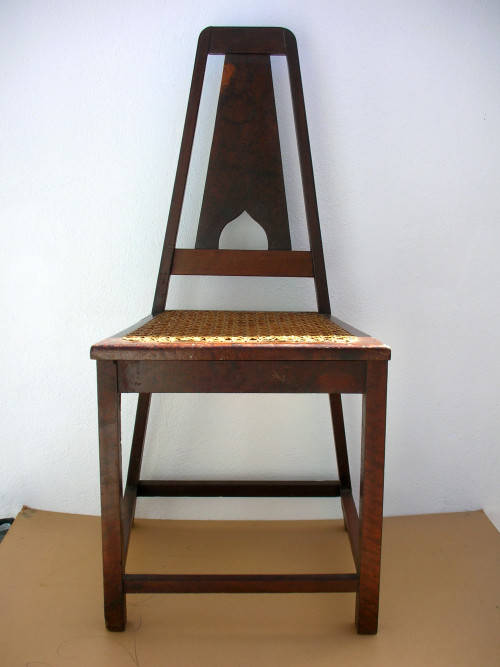 Arts & Crafts mahogany A-frame side chair with wicker seat, good condition, no damage. Delivery in Cape Town area can be arranged please ask for a quote or buyer to collect or arrange own transport from False Bay area, Cape Town, courier to supply own packaging.