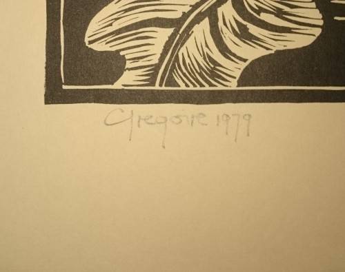 Authentic Gregoire Boonzaier linocut for sale from a private collector's collection. The linocut has been signed and dated 1979 in pencil. The layout is portrait and size of the image is 230mmx310mm.