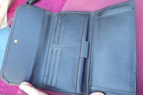 As new ABSA wallet in black.Close with clip.Suitable for notes and cards.Zip at side for change.