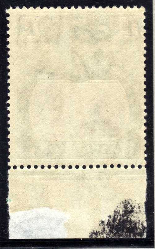 GREY-BLACK AND BRIGHT BLUE-GREEN SUPERB BOTTOM MARGINAL UNMOUNTED MINT SINGLE.