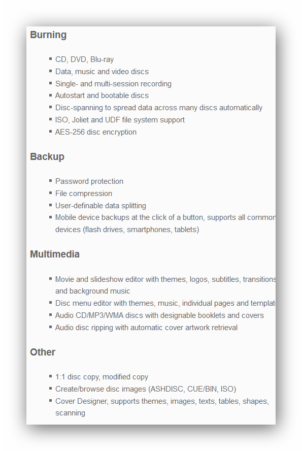 You can find more information at www.ashampoo.com and try out the trail version. If you are an owner of a previous version, please let me know before ordering for an additional discount.