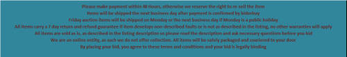R35.00 Standard shipping using one of our trusted couriers applies to most areas in South Africa. Some areas may attract a R30.00 surcharge. This will be calculated at checkout if applicable.