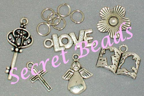 Assorted Ant. Silver Charms with jump rings and card (see examples)