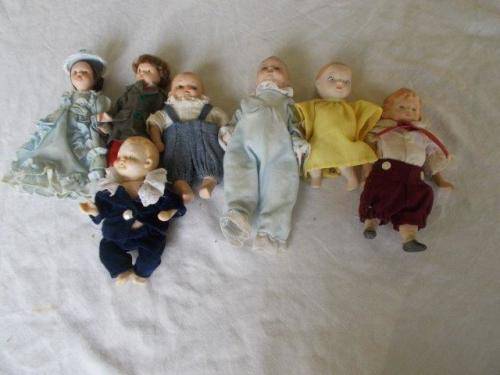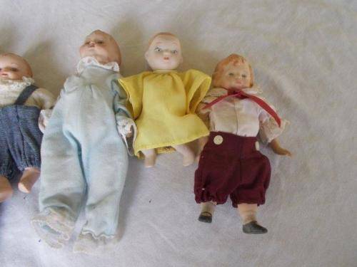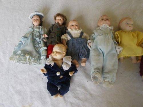 Assorted nice collection of small porcelain dolls and some nice vintage baby dolls some are complete porcelain bodys as well all items are in good used condition all no damage expect the one with the red pants his arm is loose other wise all in good used condition