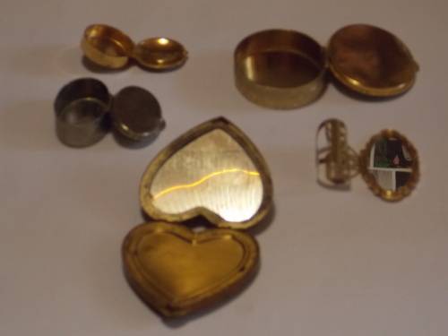 Assorted collectables consisting of pill boxes, powder boxes and a lipstick holder. This is the ideal gift or to add to your collection.