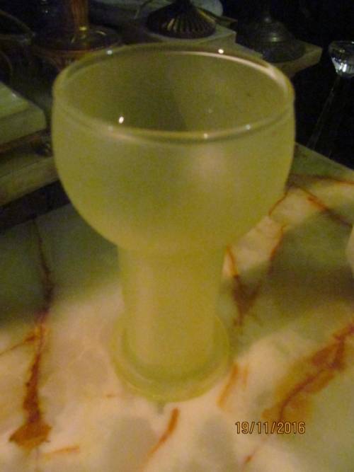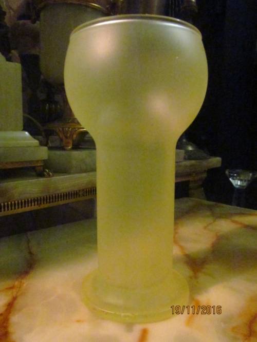 1- Frosted Tall Speciality Highball Glass (Unused as new). This Glass is in PERFECT condition with NO chips, cracks or damages. 16.5cm height.......7.4cm diameter at base..........7.5cm diameter at rim. Due to the Color and Spectacular shape of this Glass it is also ideal as a Decorative Vase