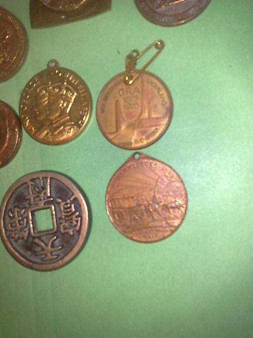 I X LARGE MEDALLION -THE GREAT WALL AND ON BACK SAYS "IF WE FAIL TO REACH THE GREAT WALL THEN WE ARE NO HEROES DATE IN STRANGE LETTERE??ALL AS ONE LOT