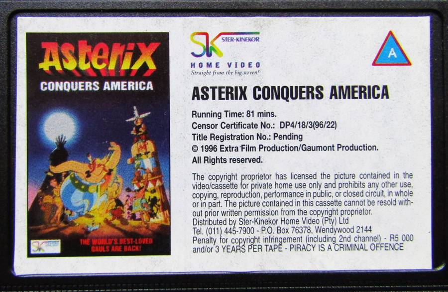 1996 Asterix Conquers America - VHS Video Tape.