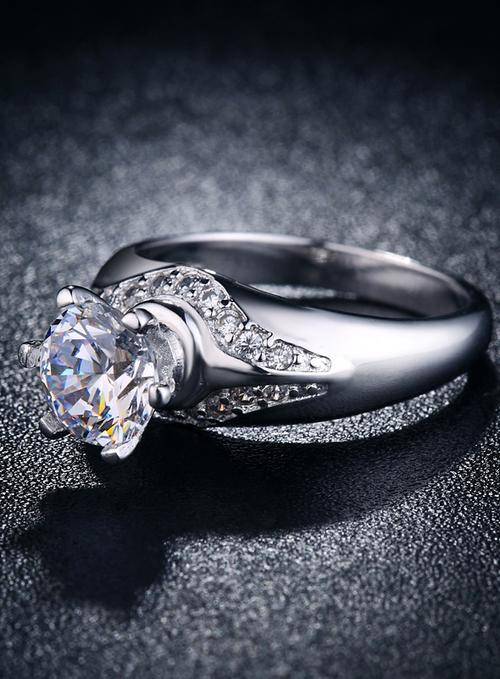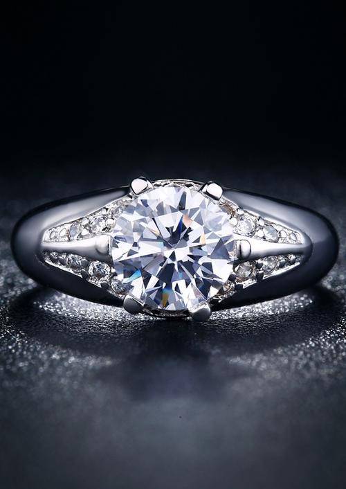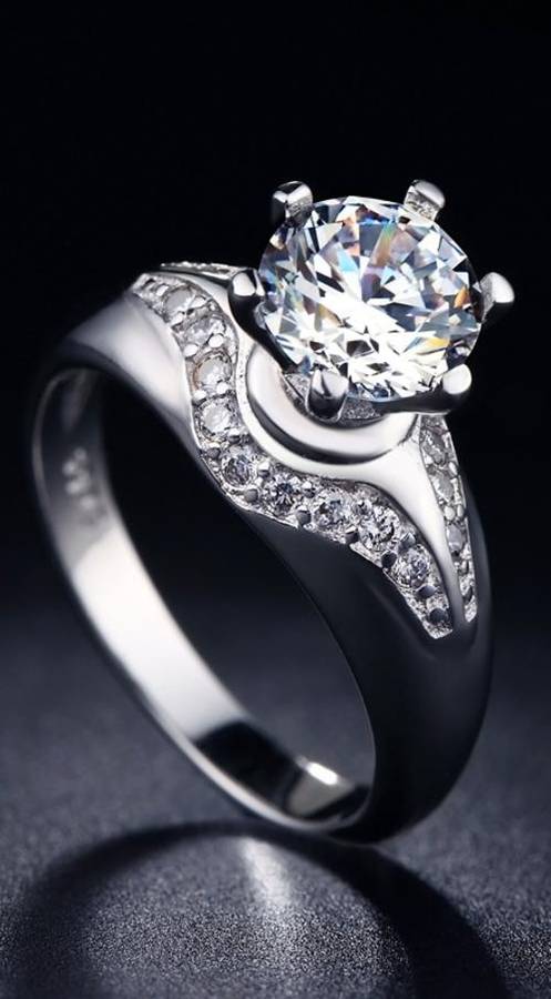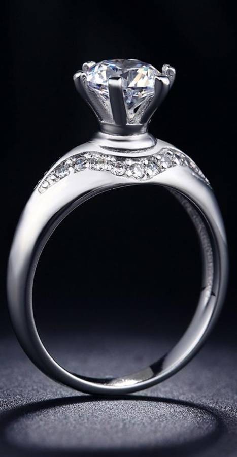 This ring would make a lasting statement. The middle stone in this ring is round cut and it is joined by smaller stones around it.
