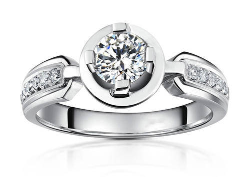 This ring is definitely fit for a princess. The middle stone in this ring is round cut, but instead of a traditional single stone design, this round cut stone is joined by smaller stones on each side. This ring is the perfect way to make any recipient feel like royalty, so order today and make your special someone feel like a princess with this ring.